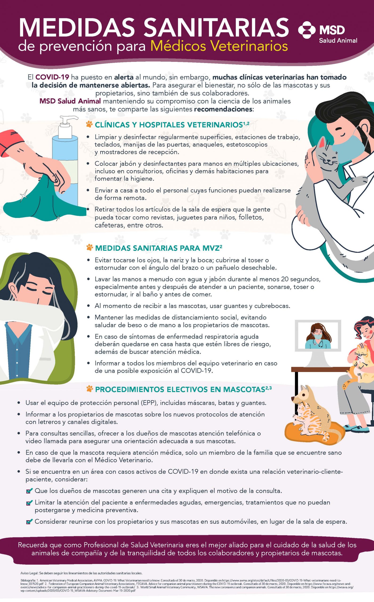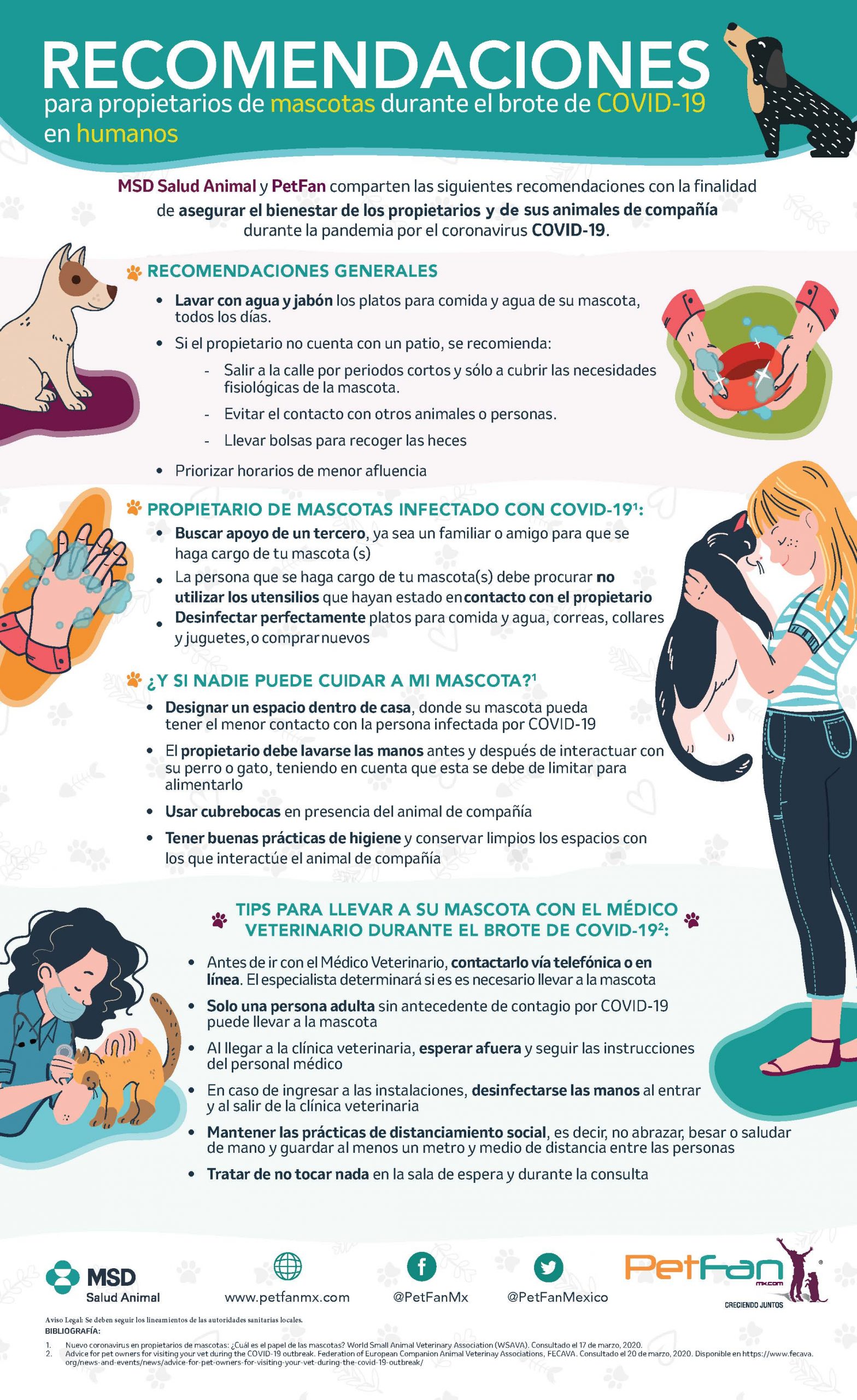 “Debe lavarse las manos antes y después de interactuar con su perro o gato, teniendo en cuenta que ésta se debe limitar para alimentarlo, usar cubrebocas en presencia de su mascota, tener buenas prácticas de higiene y conservar limpios los espacios en los que esté la mascota, esto con el objetivo de minimizar el riesgo de contagio de otras personas que entren en contacto con las superficies”1, añadió Adrian Polo de MSD Salud Animal en México.