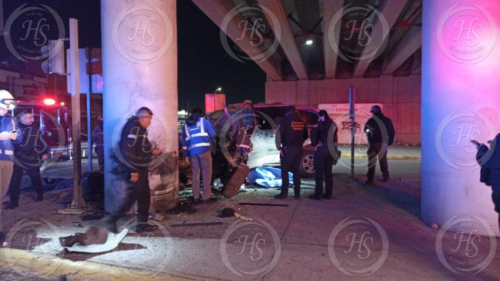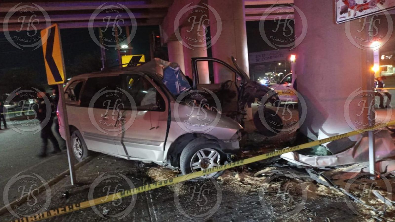 De acuerdo con el peritaje preliminar de Tránsito Municipal, un hombre y una mujer viajaban a bordo de una camioneta tipo van, presuntamente a exceso de velocidad, con dirección de norte a sur. Al pasar por debajo del puente del bulevar Jesús Valdés Sánchez, el conductor perdió el control de la unidad y se impactó violentamente contra uno de los pilares de concreto del paso a desnivel.