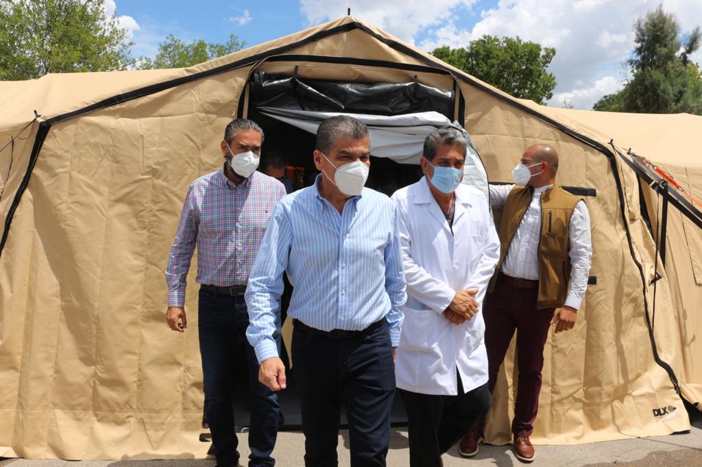 Acompañado del Secretario de Salud del Estado, Roberto Bernal Gómez, y Roberto de los Santos Vázquez, Presidente Municipal de Acuña, Riquelme Solís expresó que el segundo Hospital Móvil en la entidad, gestionado ante diversas instancias por el Secretario de Salud, Roberto Bernal Gómez, está dotado de la infraestructura de primer nivel requerida para su funcionamiento, climatizado y con los servicios básicos dotados por el Municipio.