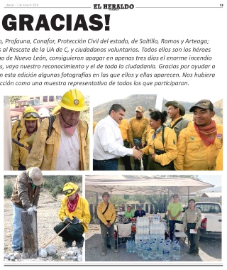 anónimos que, en conjunto con los helicópteros que enviaron del estado vecino de Nuevo León, consiguieron apagar en apenas tres días el enorme incendio