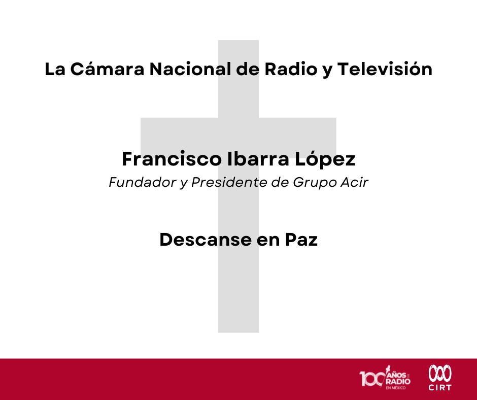 Ciudad de México.- La mañana de este viernes se informó la muerte del empresario y presidente de Grupo ACIR, el grupo radiofónico mexicano operador de varias estaciones de radio, Francisco Ibarra López a los 90 años de edad, considerado el líder nacional de la Radio.