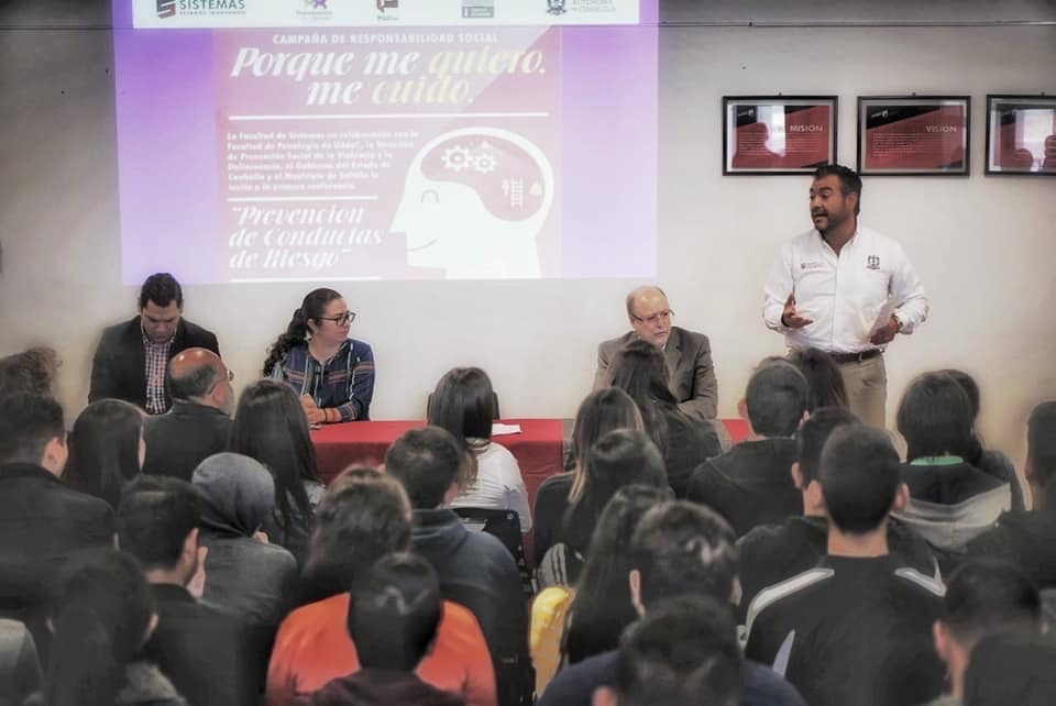 En una sinergia entre la Facultad de Sistemas y la Facultad de Psicología de la Universidad Autónoma de Coahuila con dependencias municipales y estatales, se dio arranque al programa “Porque me quiero, me cuido”, en el que la Dirección de Prevención Social de la Violencia y la Delincuencia participará a través de pláticas y talleres orientados a que las y los jóvenes estudiantes desarrollen habilidades que coadyuven para su bienestar.