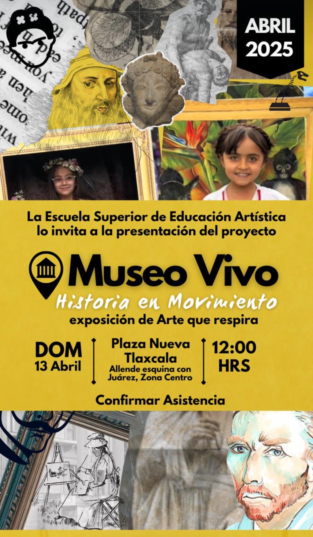 El próximo 13 de abril de este 2025, a las 12:00 del mediodía, la Plaza de la Nueva Tlaxcala se convertirá en una galería al aire libre cuando 14 alumnas de la Academia de Baile “Pasos Firmes” recreen y se conviertan en “arte vivo” al caracterizarse como obras de icónicos pintores como Leonardo da Vinci, Van Gogh, Frida Kahlo y Andy Warhol.