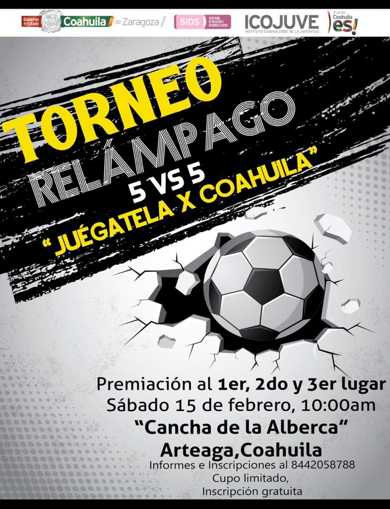 Maldonado Wong detalló que el torneo relámpago se llevará a cabo el próximo 15 de febrero en la cancha deportiva conocida como “Cancha de la alberca”, en la Zona Centro de Arteaga, Coahuila.