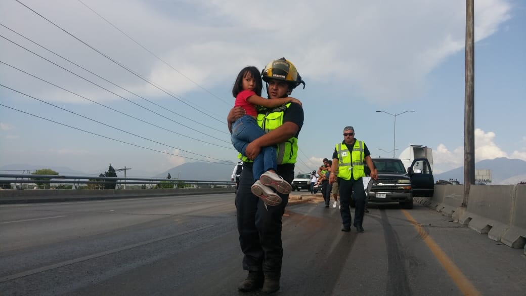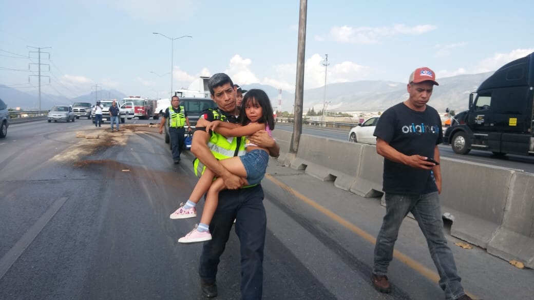 El trabajador de quinta rueda viajaba con sus pequeñas de 7 y 5 años de edad, respectivamente, a bordo de un tractocamión con dirección al oriente.