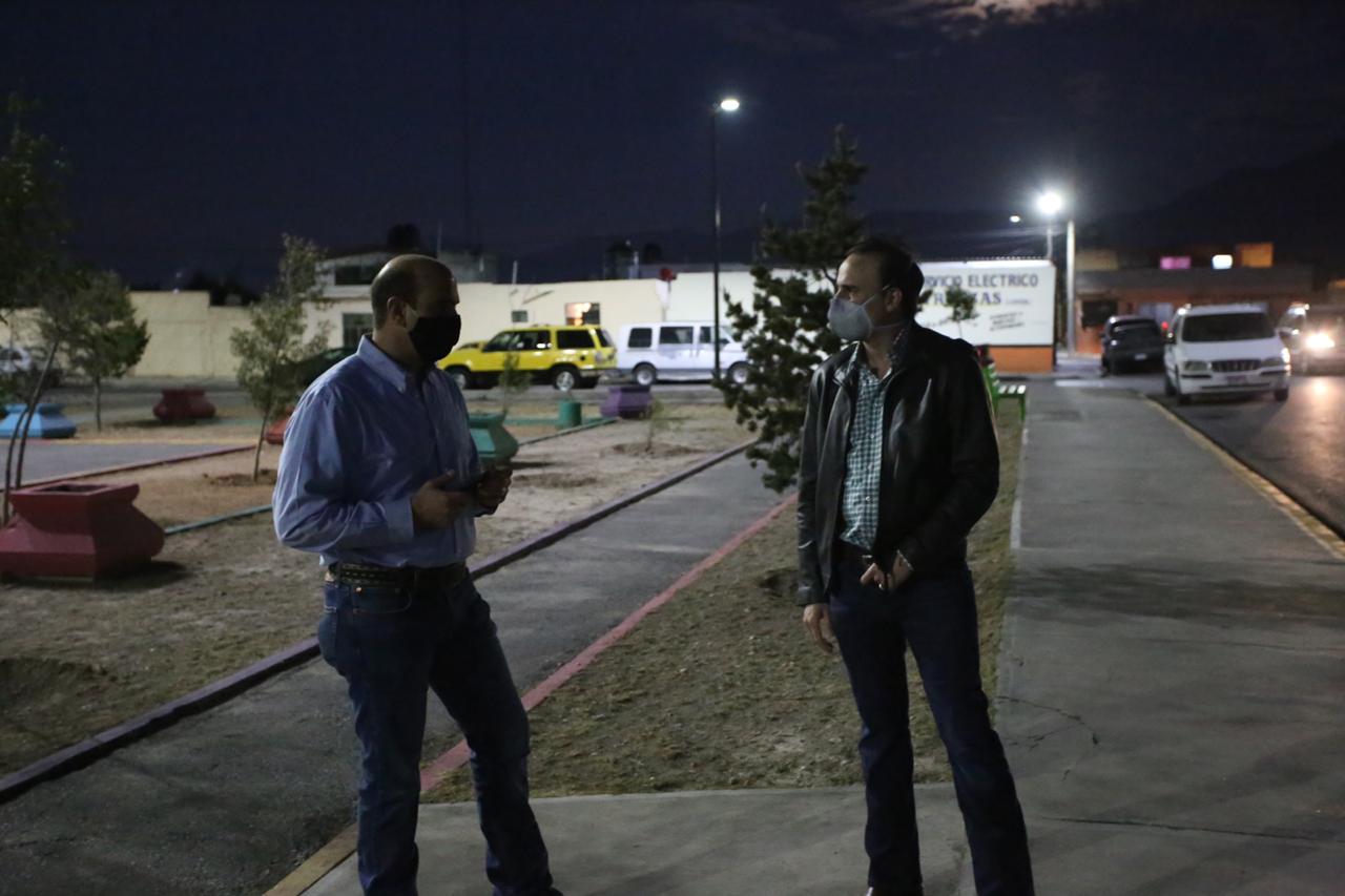 Tomando todas las medidas preventivas correspondientes ante el Covid-19, Jiménez Salinas hizo un recorrido que inició en la colonia Buenos Aires, a fin de constatar los trabajos de mejora de este servicio público.