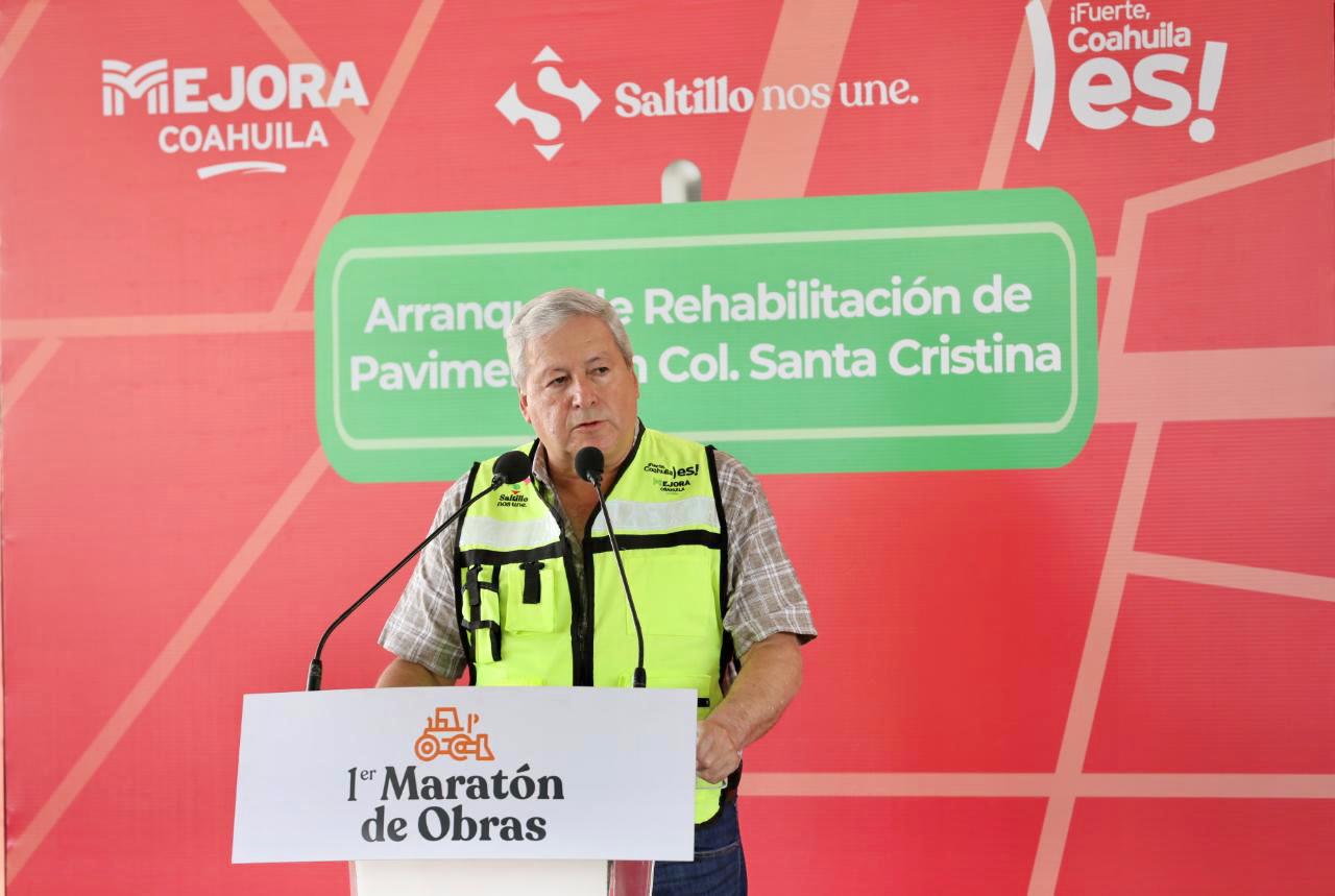 Con la rehabilitación de 7 mil 383 metros cuadrados de pavimento en la colonia Santa Cristina, el alcalde José María Fraustro Siller llevó el Primer Maratón de Obras “Saltillo nos une” al oriente de la ciudad.