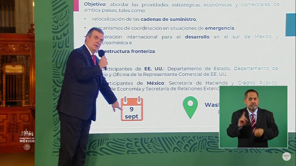 “Confirmar que el diálogo económico de alto nivel que el presidente convino con el presidente Biden y la vicepresidenta Harris va a tener lugar el día 9 de septiembre en Washington”, apuntó en la conferencia matutina.