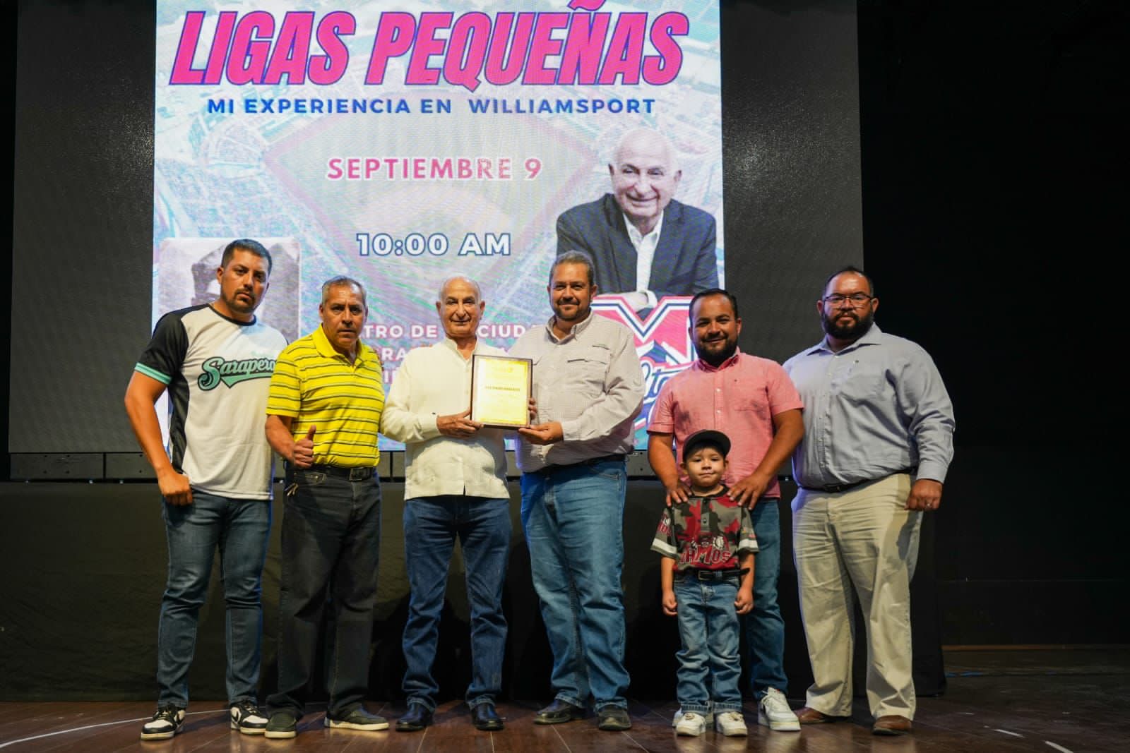 Alrededor de 300 menores participaron en la plática “Ligas Pequeñas”, impartida por José Maíz García, presidente del Club de Béisbol “Sultanes de Monterrey” y uno de los peloteros del equipo mexicano ganador de la Serie Mundial de Ligas Pequeñas en Williamsport, Pensilvania, en 1957.