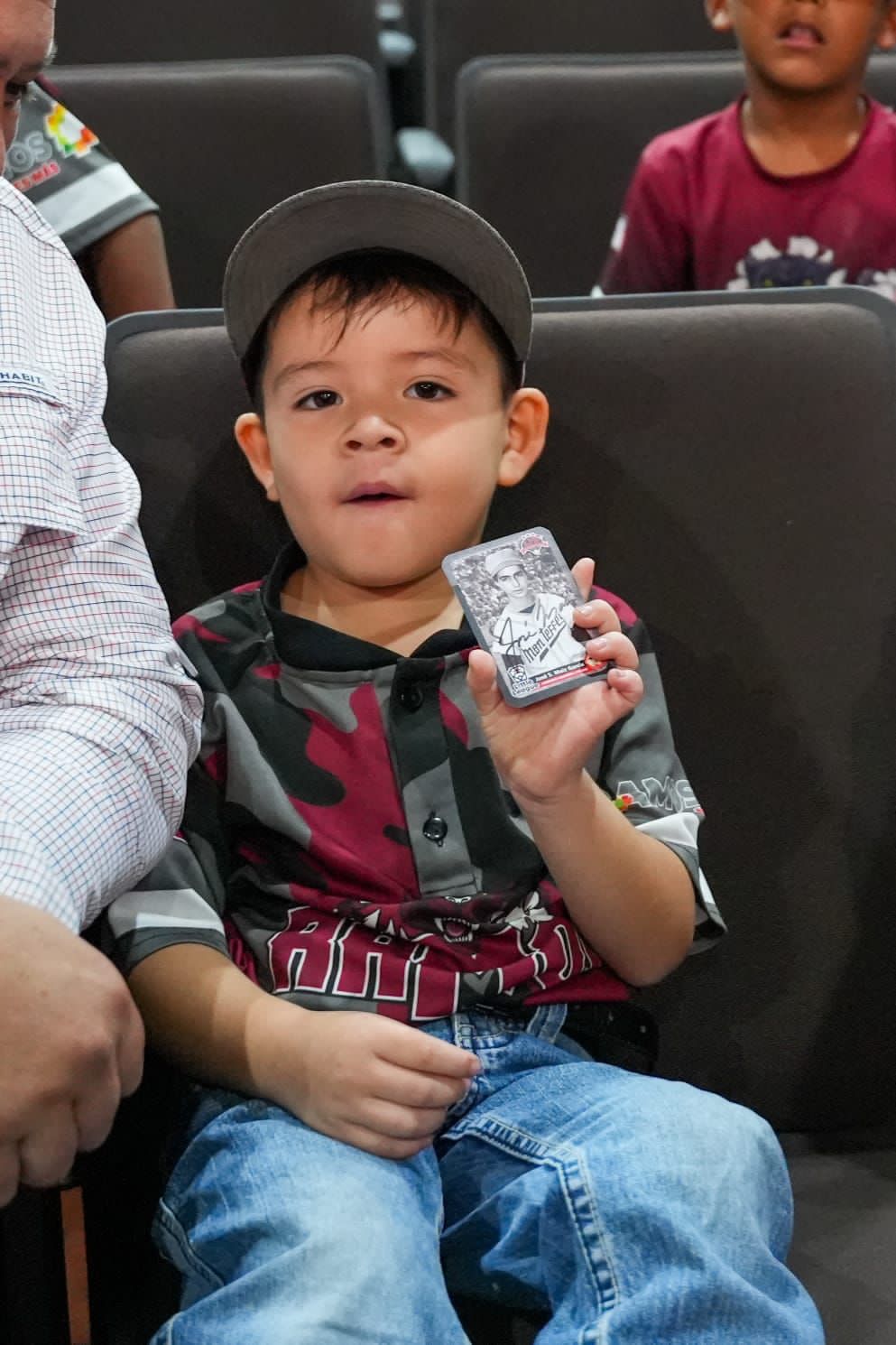 Acompañados por sus padres, los pequeños integrantes de la Escuela Municipal de Béisbol “Pumas” y de la Academia de Béisbol Saraperos, participaron en una sesión de preguntas y respuestas.