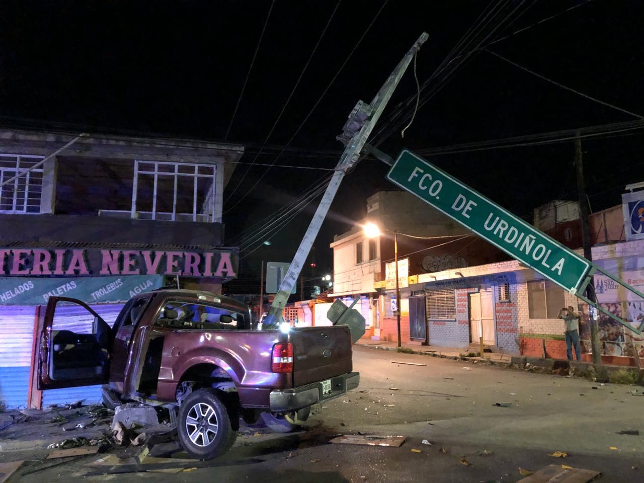 Fue en el cruce con Manuel J. Othon que perdió el control para entonces precipitarse contra un pequeño muro de contención y un poste de concreto, así como contra una paletería.