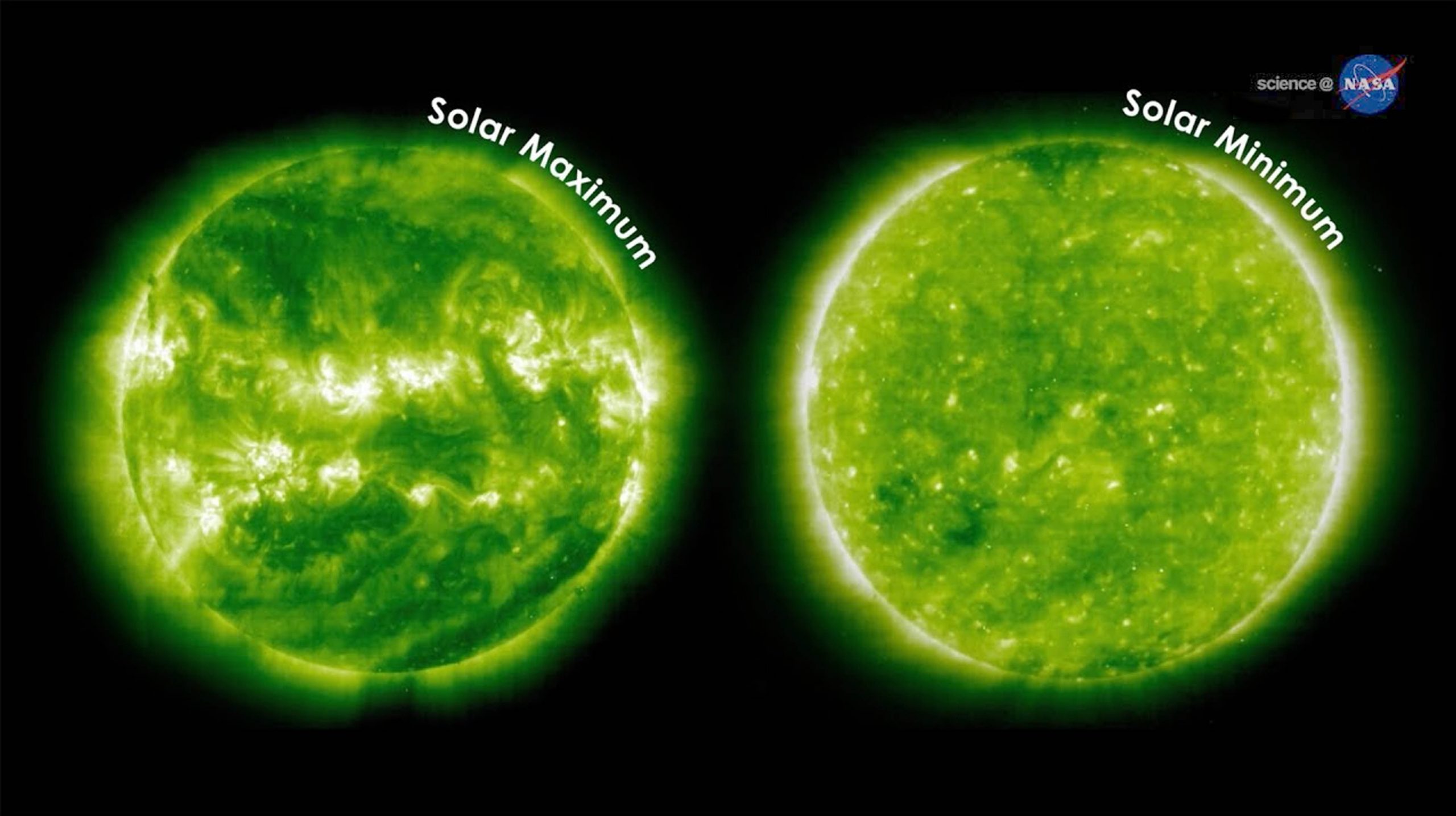 Ha habido periodos en donde por varios ciclos el Sol ha presentado baja actividad (pocas manchas y tormentas), y en otros ha sido más intensa. El que recién está terminando, el ciclo 24, fue moderado y podemos decir que en su pico (en 2014) no tuvo pocas ni muchas manchas.