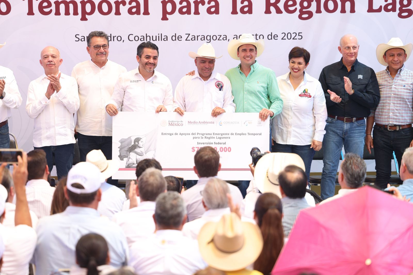 “Junto con mi amigo Efraín, Director Nacional de Conagua y la alcaldesa y los alcaldes de La Laguna, arrancamos desde San Pedro un mega programa de empleo temporal que impulsamos junto con la Presidenta Claudia Sheinbaum a raíz del mini ciclo agrícola. Con una inversión de 75 millones de pesos, vamos a generar 4 mil nuevos empleos en los próximos meses, con los cuales beneficiamos a muchas familias coahuilenses” informó el mandatario coahuilense.