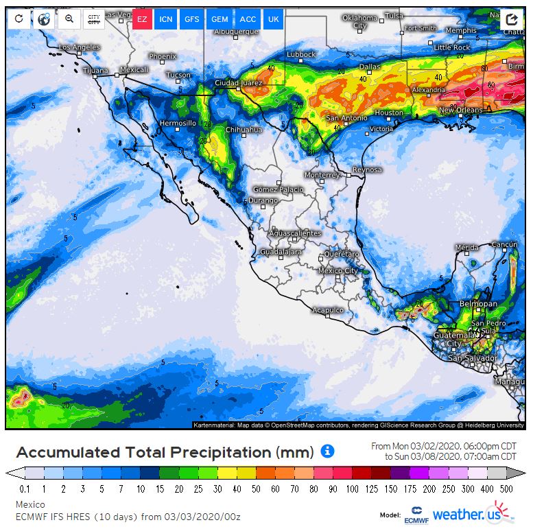 Según el comunicado emitido por el Servicio Meteorológico Nacional (SMN) de la Comisión Nacional del Agua, el Frente Frío No. 42 y la Décima Tormenta Invernal recorrerán el noroeste y norte de México en el transcurso del día, ocasionarán ambiente muy frío y potencial de lluvias fuertes a muy fuertes acompañadas de descargas eléctricas en dichas regiones, rachas fuertes de viento en la Mesa del Norte y la Mesa Central, con posibilidad para la formación de torbellinos o tornados en el norte de Coahuila, Nuevo León y Tamaulipas.