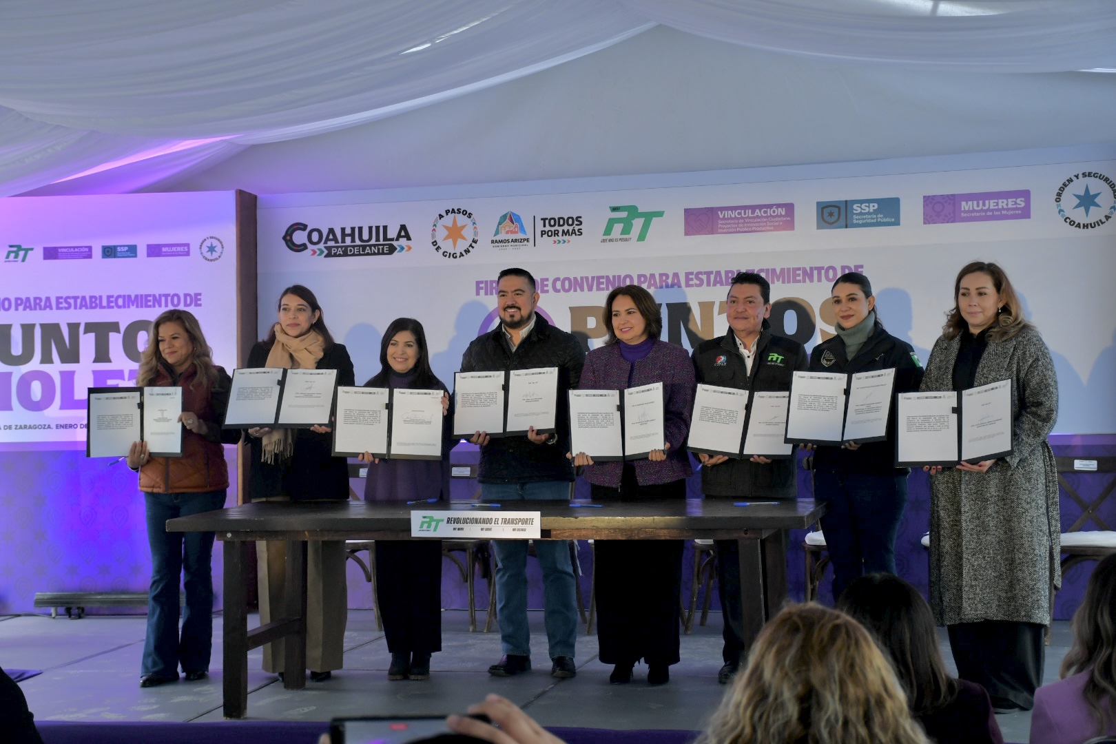 Con el objetivo de crear más espacios seguros para las mujeres en Coahuila, el Gobierno del Estado, a través de la Secretaría de Vinculación Ciudadana, Proyectos de Innovación Social e Inversión Público Productiva y la Secretaría de las Mujeres, inauguró un nuevo Punto Violeta en la empresa 501-RT en Ramos Arizpe.