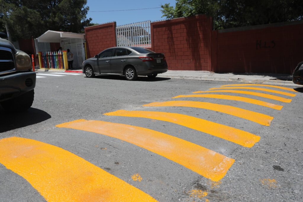 En cuanto al programa Colonias al 100 implementado por el alcalde Javier Díaz González, se trabaja para ofrecer mayor seguridad a peatones y automovilistas de la colonia Las Teresitas, con la aplicación de pintura de pasos peatonales en la calle Perones, en sus cruces con Otauay y Mezquite, así como de los reductores de velocidad frente a la escuela primaria “Héctor Mario López Treviño”, y el kínder “Antonio Cárdenas Rodríguez”. (EL HERALDO)