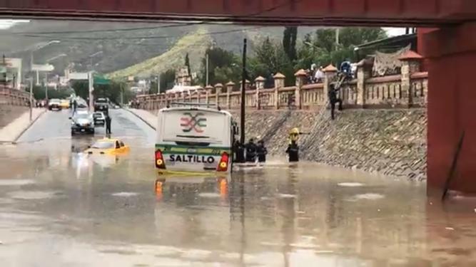 Inicio SALTILLO Rescatan policías y bomberos a pasajeros de combi tras quedar atrapados en...