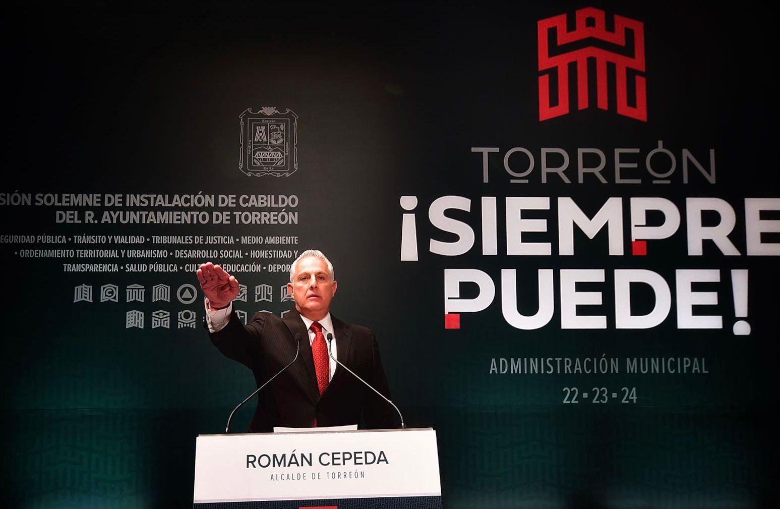 A las 12:30 horas de este sábado en el Teatro Nazas, Román Alberto Cepeda González rindió protesta como alcalde, y aseguró que hoy la ciudad retoma el rumbo porque Torreón siempre puede.