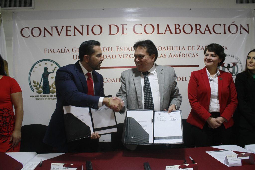 El Fiscal General del Estado, Gerardo Márquez Guevara, comentó que gracias a que la Universidad Vizcaya ofrece, en Coahuila, carreras relacionadas al campo de la procuración de justicia y el Sistema de Justicia Penal, la FGE ofrece espacios públicos y especializados a los alumnos de sus distintos planteles y que tengan una opción más para prestar su servicio social o realizar sus prácticas profesionales.