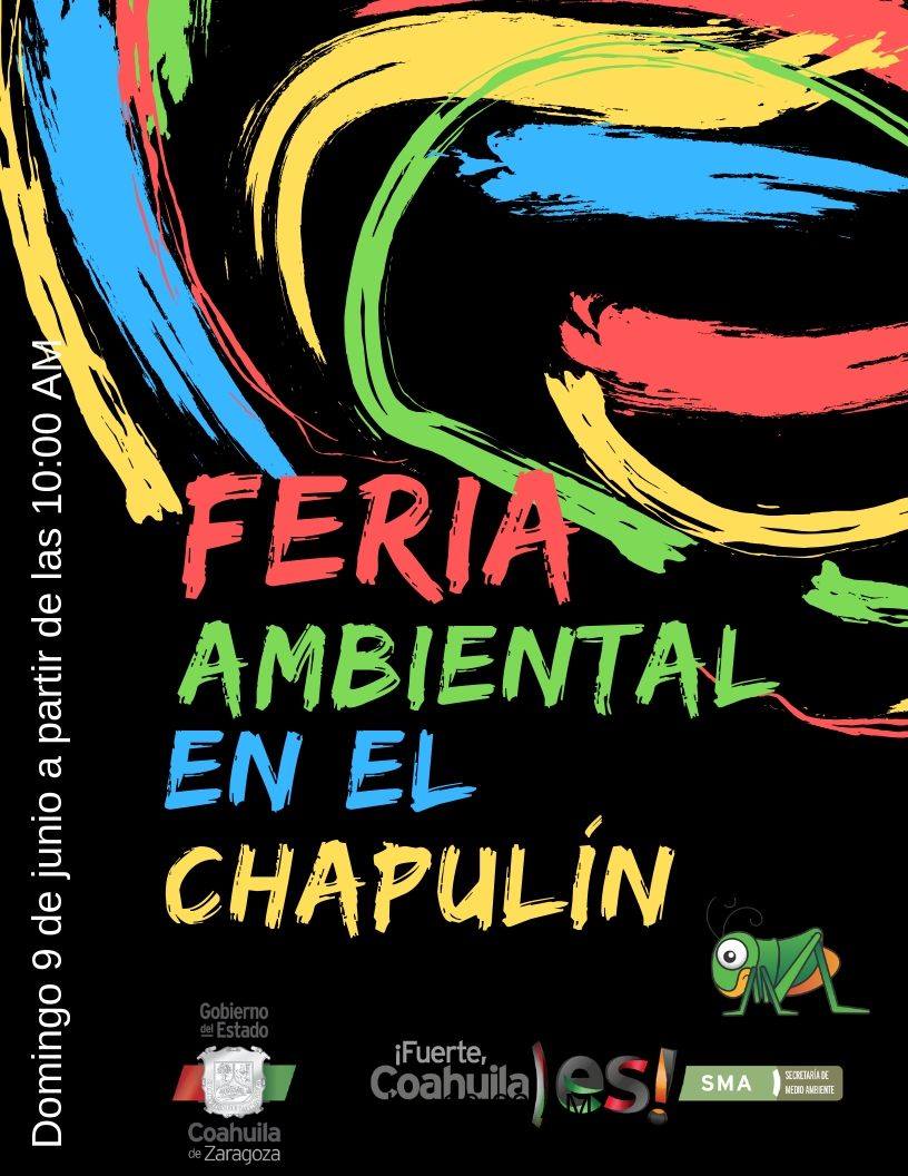 Este próximo domingo a partir de las 10:00 de la mañana, en el Parque Ecológico «El Chapulín», se realizará la «Feria Ambiental en El Chapulín» organizada por el Gobierno de Coahuila, a través de su Secretaría del Medio Ambiente, que ofrecerá a las familias saltillenses, atractivos como muestra y venta de productos orgánicos, juegos infantiles, charlas y recorridos por el espacio, todo en favor de promover la cultura ambiental.