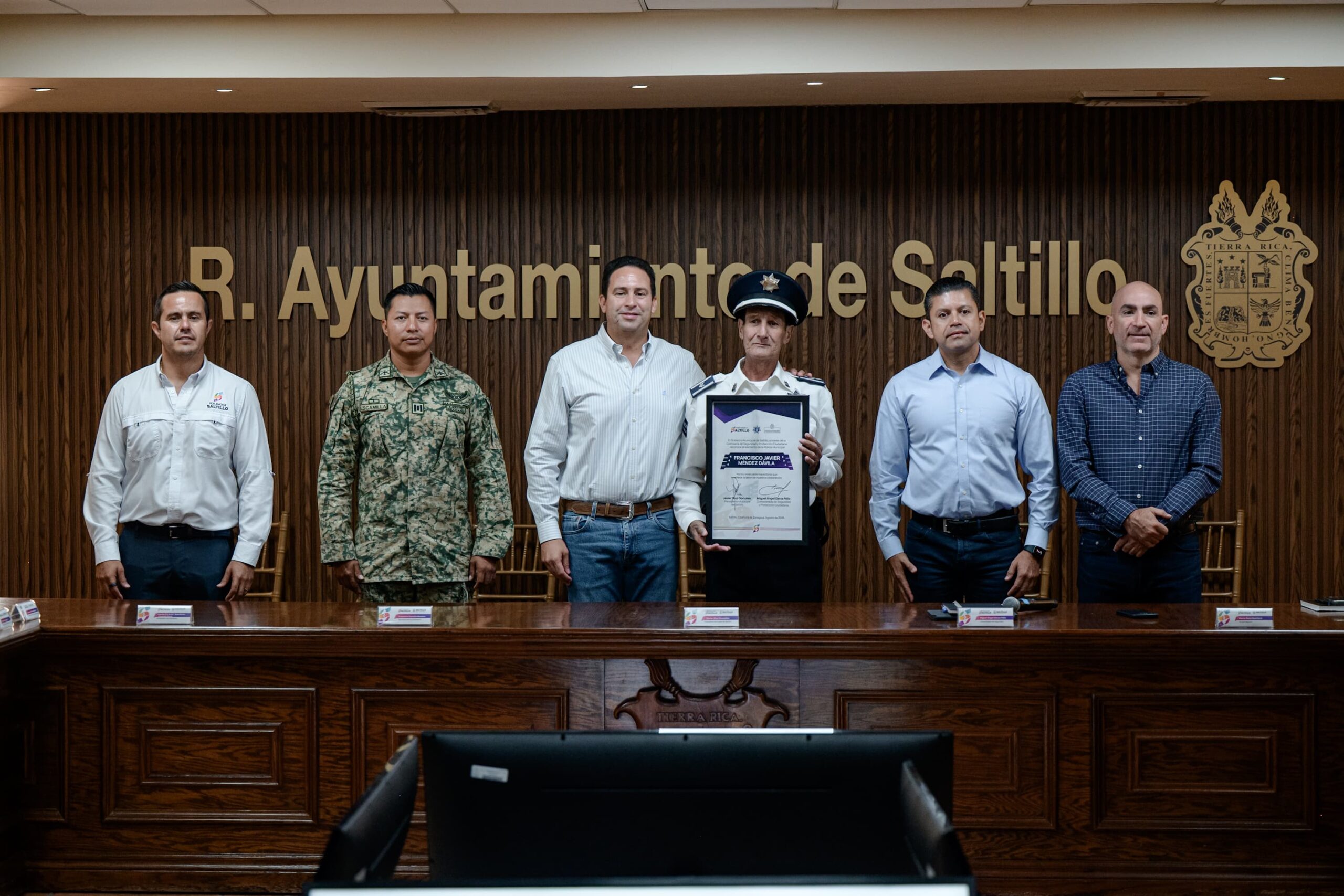 El alcalde Javier Díaz destacó que en Coahuila y en Saltillo se trabaja de manera coordinada en seguridad, haciendo equipo con el Gobernador Manolo Jiménez Salinas, la sociedad civil, iniciativa privada, el Ejército Mexicano, la Guardia Nacional, y la Marina Armada de México.