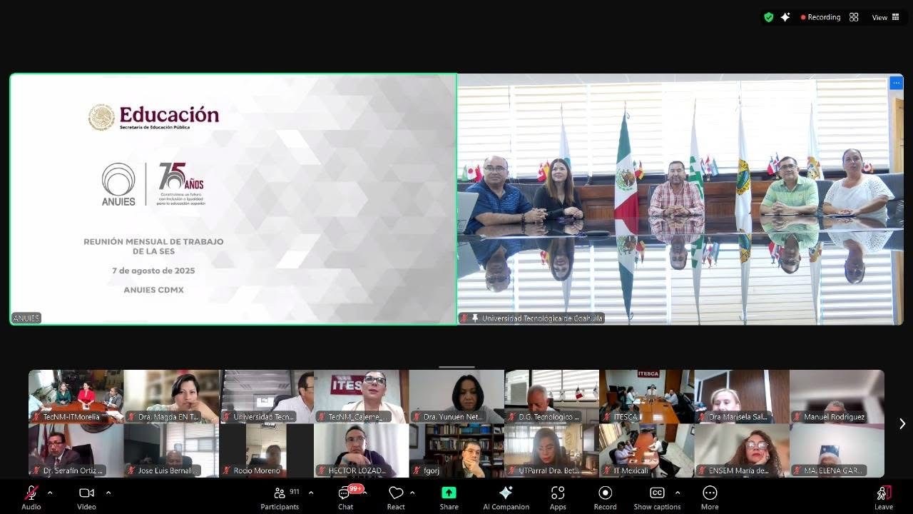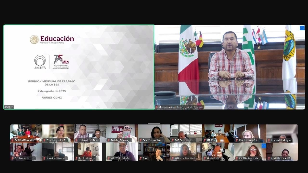 La Universidad Tecnológica de Coahuila (UTC) formó parte este viernes de la reunión mensual de trabajo convocada por la Secretaría de Educación Superior Federal, encuentro en el que se revisaron estrategias y acciones para impulsar la calidad y el desarrollo de las políticas educativas a nivel nacional.