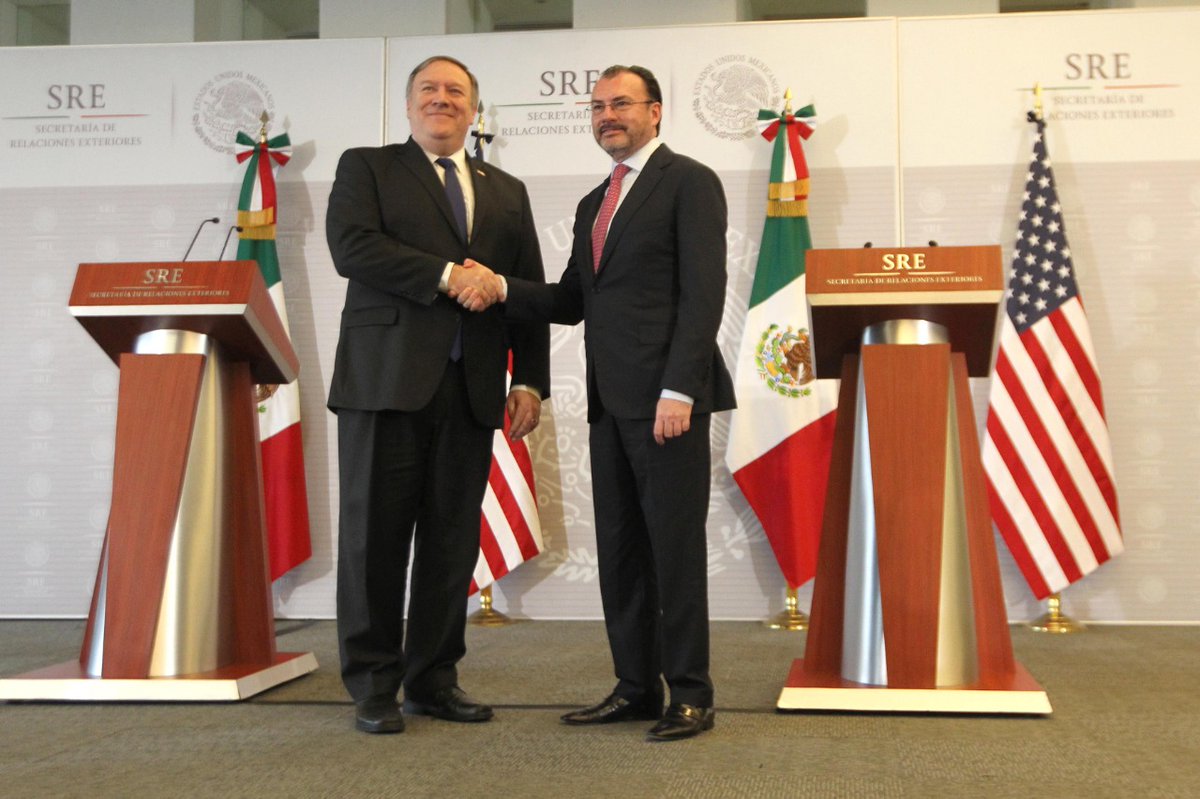 Ciudad de México.- Por segunda ocasión en menos de seis meses, el secretario de Estados de Estados Unidos, Mike Pompeo, se reunió con el titular de la Secretaría de Relaciones Exteriores (SRE), Luis Videgaray.