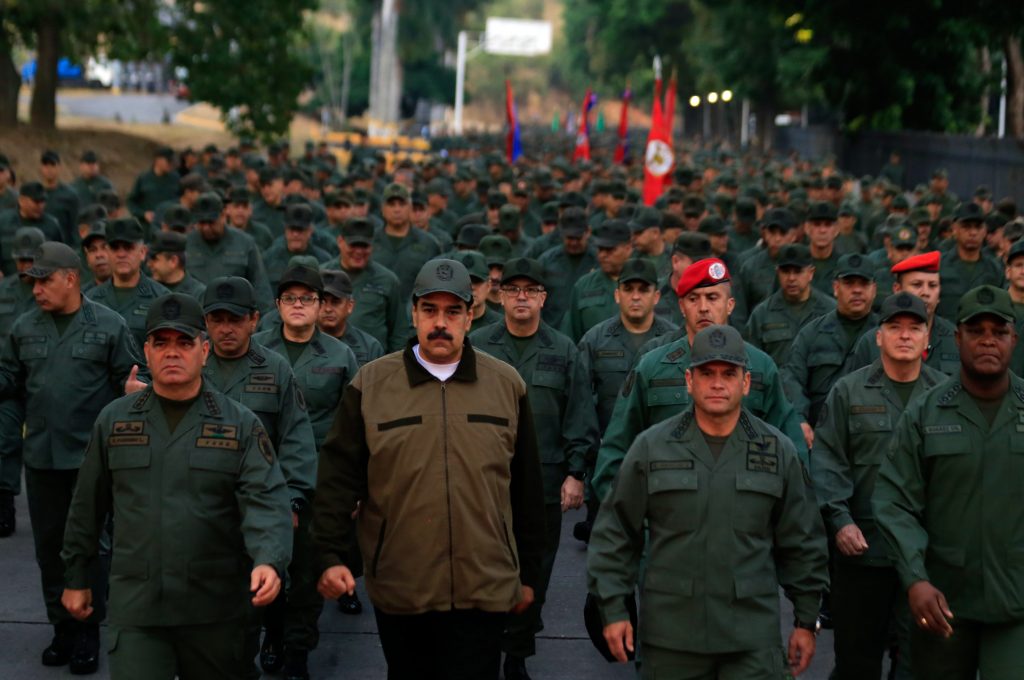 Desde el patio de la Academia Militar de Venezuela, Maduro insistió en que los militares venezolanos se encuentran en combate por «la defensa de nuestra dignidad, de nuestro honor y del derecho a existir de nuestra república y de nuestra identidad nacional».