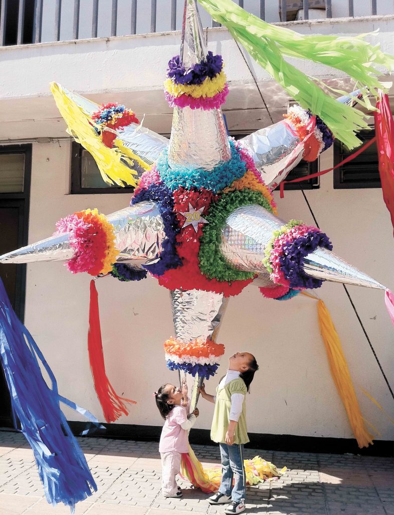 NAUCALPAN, Méx.- Tradition/Tradiciones-Piñatas.- Una estrella plateada de nueve brillantes picos y tres metros de altura, hecha con una olla, engrudo, papel de colores y mucha imaginación, fue la piñata ganadora del primer lugar en un concurso celebrado este martes por el Instituto de Cultura naucalpense. Foto Agencia EL UNIVERSAL. S144
