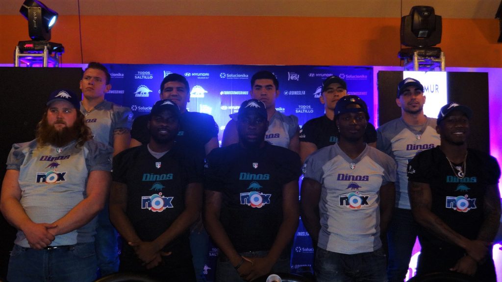 Con la presencia de Alina Garza Herrera, directora del Instituto Estatal del Deporte en Coahuila y Antonio Cepeda Licón, director de Deporte Municipal, el equipo Dinos de Saltillo presentó −la tarde de este miércoles− a sus refuerzos para la próxima Temporada 2020 de la Liga de Futbol Americano Profesional (LFA), en la que buscará regalar a su afición inolvidables partidos y, sobre todo, el título de campeón dentro de este circuito.