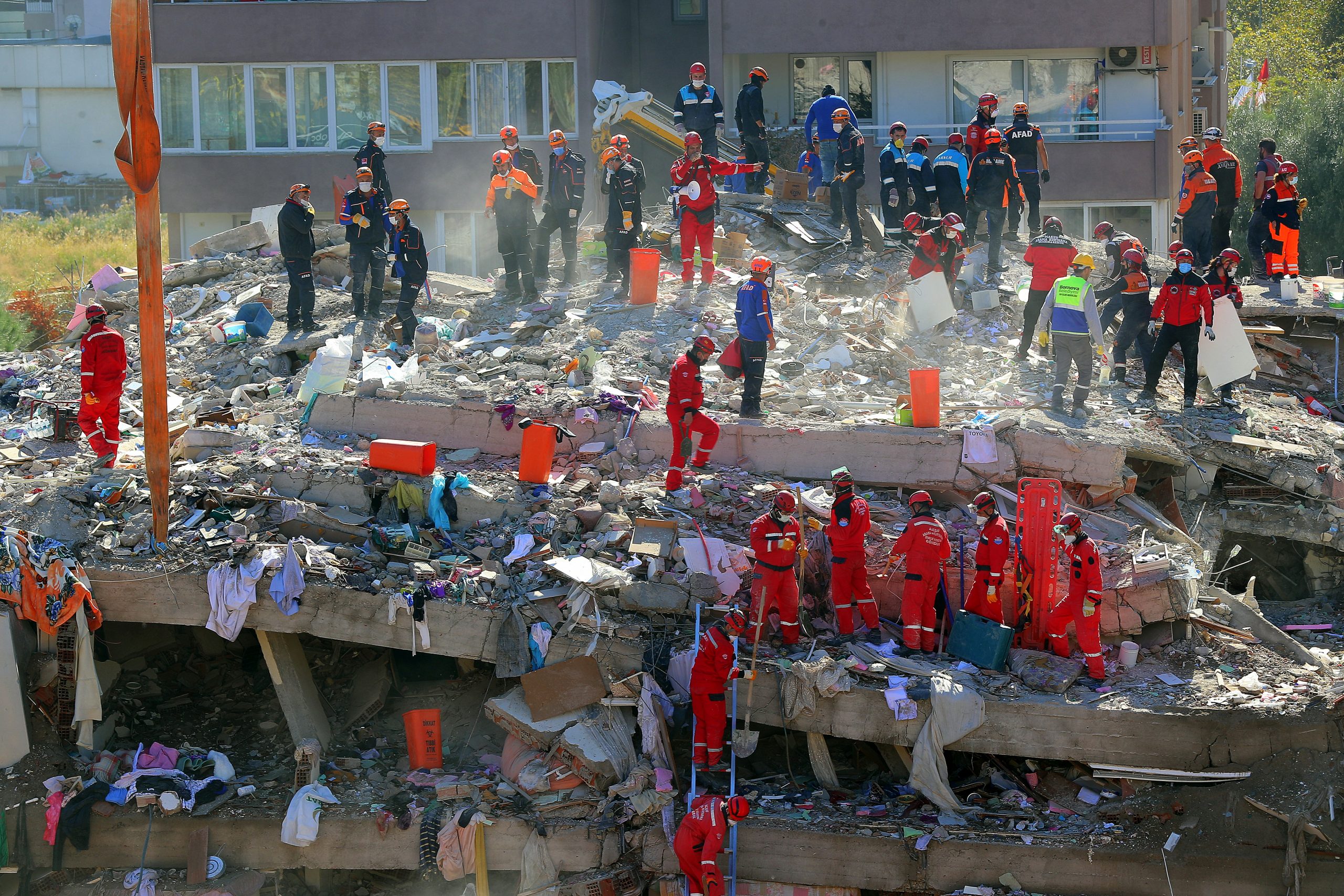 El terremoto de magnitud 6.6 sacudió el viernes el mar Egeo frente al distrito de Seferihisar en Esmirna. (XINHUA)