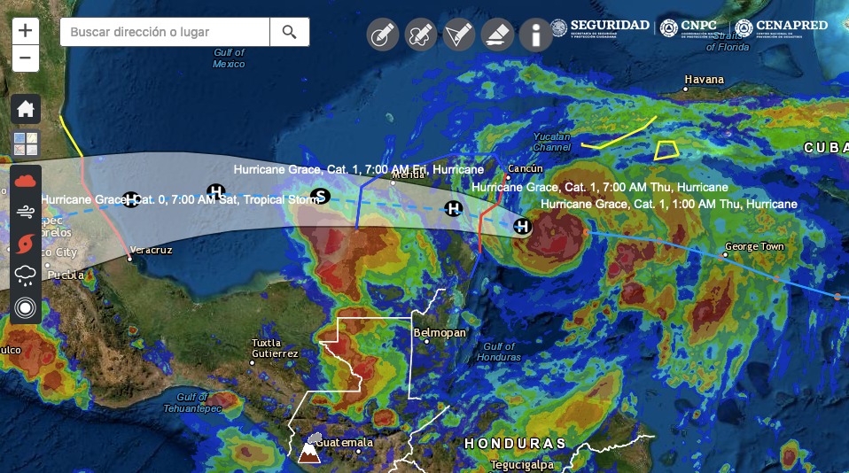 «En el transcurso de este jueves, Grace se degradará a tormenta tropical cuando se desplace sobre Yucatán y por la noche se adentrará en el Golfo de México, donde volverá a intensificarse a huracán de categoría 1, fuerza con la que impactará nuevamente el territorio mexicano, esta vez en las costas del estado de Veracruz (este)», pronosticó la Conagua.