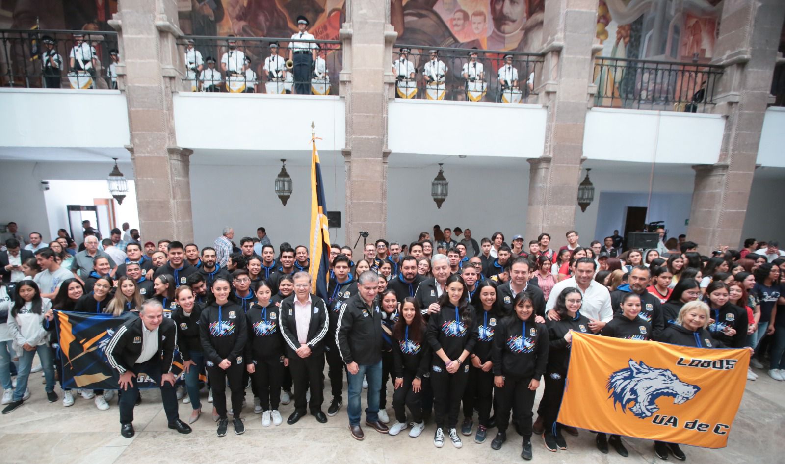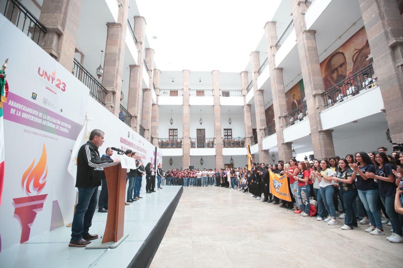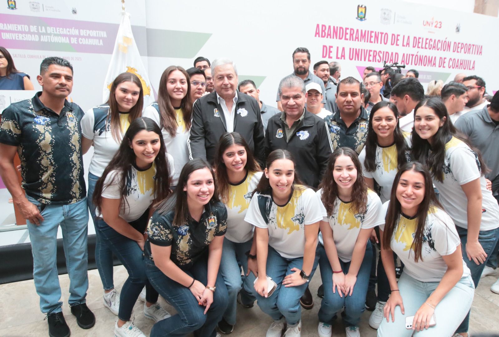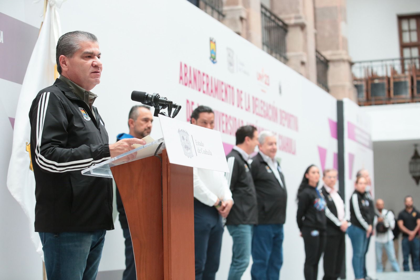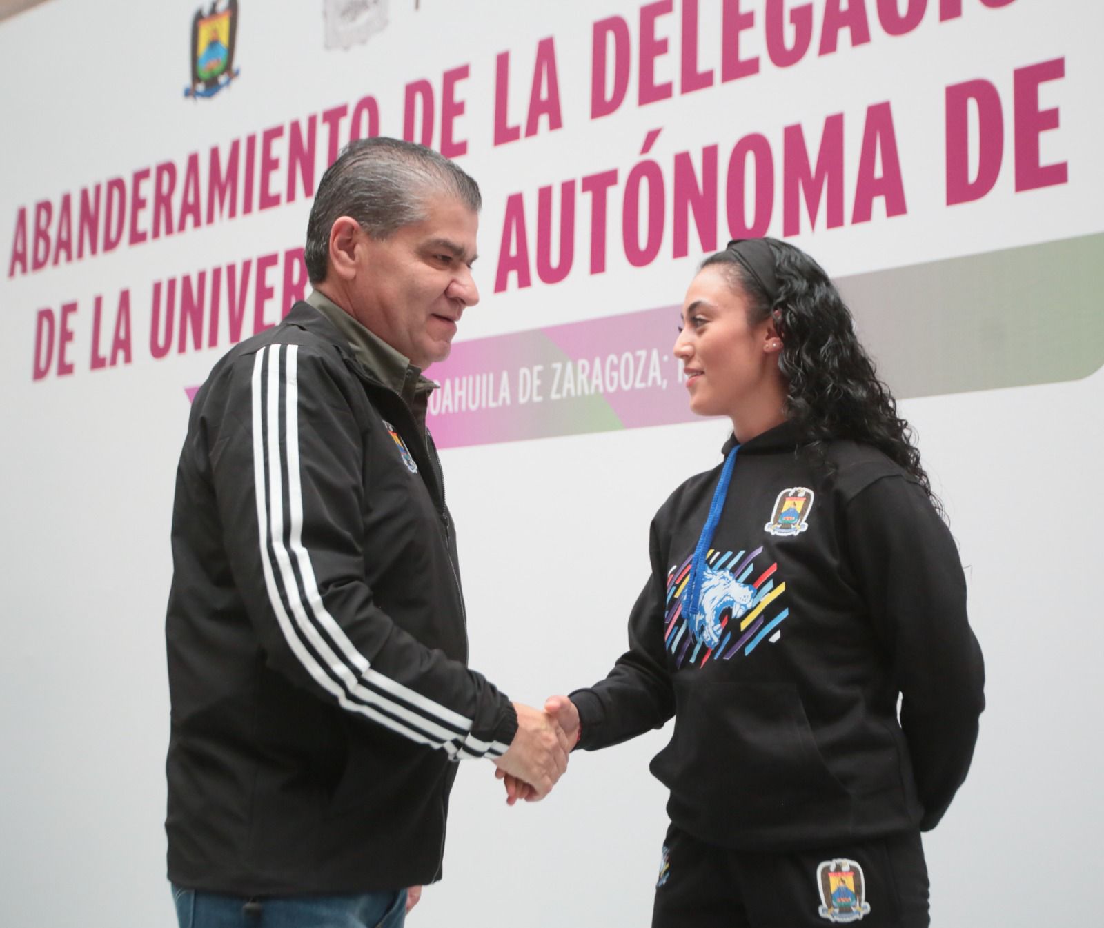 Abandera gobernador Miguel Riquelme a delegación de atletas de la UAdeC que participará en la Universiada 2023