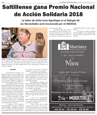 18 EL HERALDO DE SALTILLO | Viernes 02 de Noviembre de 2018