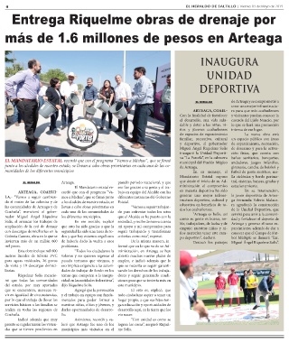 junto a los alcaldes de nuestro estado, se llevan a cabo obras prioritarias en cada una de las co- de Arteaga. gimnasio, cancha de beisbol y