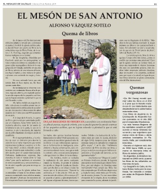 el martes 2 de abril- la iglesia católica pola- juntaron sus libros y los quemaron frente a