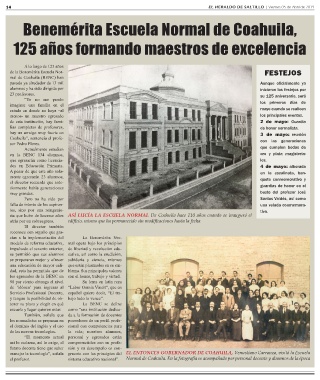 ría que hubo de hacerse años ASÍ LUCÍA LA ESCUELA NORMAL De Coahuila hace 110 años cuando se inauguró el