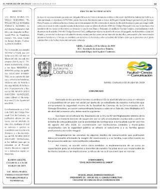 iniciaron ante la Notaría a Saltillo, Coahuila a 03 de abril de 2019