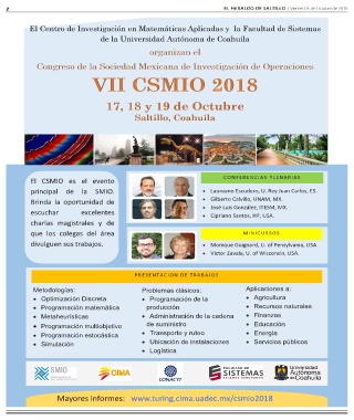 Mayores informes: www.turing.cima.uadec.mx/csmio2018