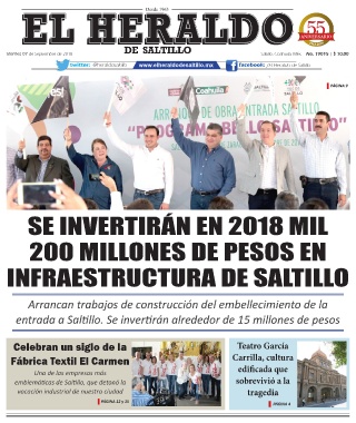 Page 1 - EL Heraldo de Saltillo - Viernes 07 de Septiembre 2018