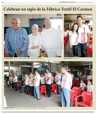 LA FAMILIA ARIZPE en el festejo por el primer siglo de la Fábrica Textil El Carmen PATRICIA ORTEGA, Catalina Arizpe y Cistina Jiménez. ADRIANA Y GERARDO Arizpe, Ana María López.
