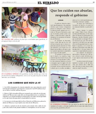 DE CUATRO MIL millones de pesos que se destinaban para guarderías, el da y de Bienestar. que actualmente se entregan 950 pe-