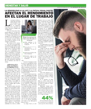 y la mitad menciona que la sen- tos problemas. Pocos empleados UV y la nociva luz azul-violeta,