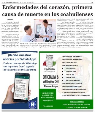 EL HERALDO DE SALTILLO | Viernes 11 de Enero de 2019 11