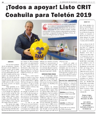 22 EL HERALDO DE SALTILLO | Viernes 13 de Diciembre de 2019