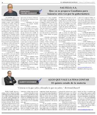 6 EL HERALDO DE SALTILLO | Viernes 15 de Febrero de 2019