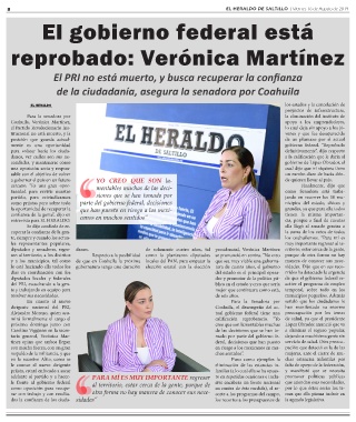 8 EL HERALDO DE SALTILLO | Viernes 16 de Agosto de 2019