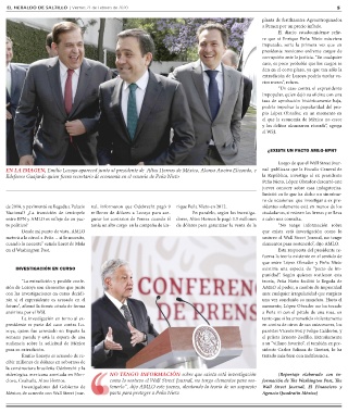 clova, Coahuila, Altos Hornos. como lo sostuvo el Wall Street Journal, no tengo elementos para sos- formación de The Washington Post, The