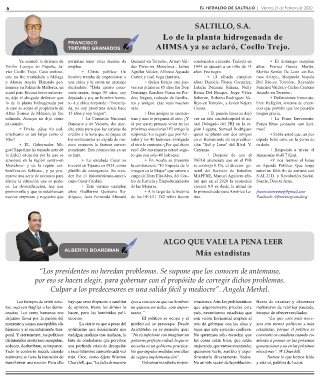 6 EL HERALDO DE SALTILLO | Viernes 21 de Febrero de 2020