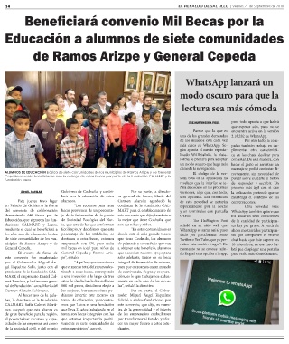 14 EL HERALDO DE SALTILLO | Viernes 21 de Septiembre de 2018